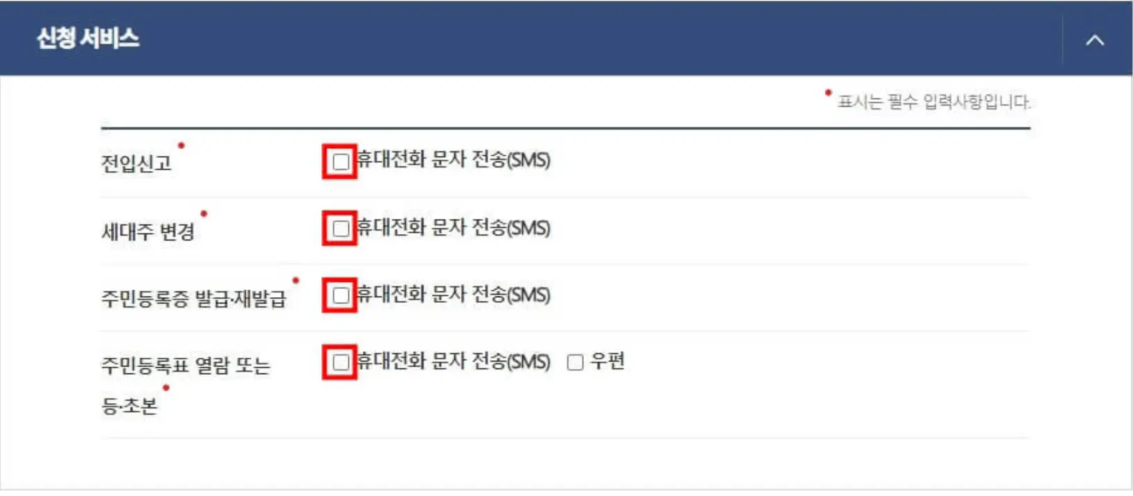 본인 이외 전입신고가 발생한 경우 신청자에게 안내문자가 발송됩니다.
