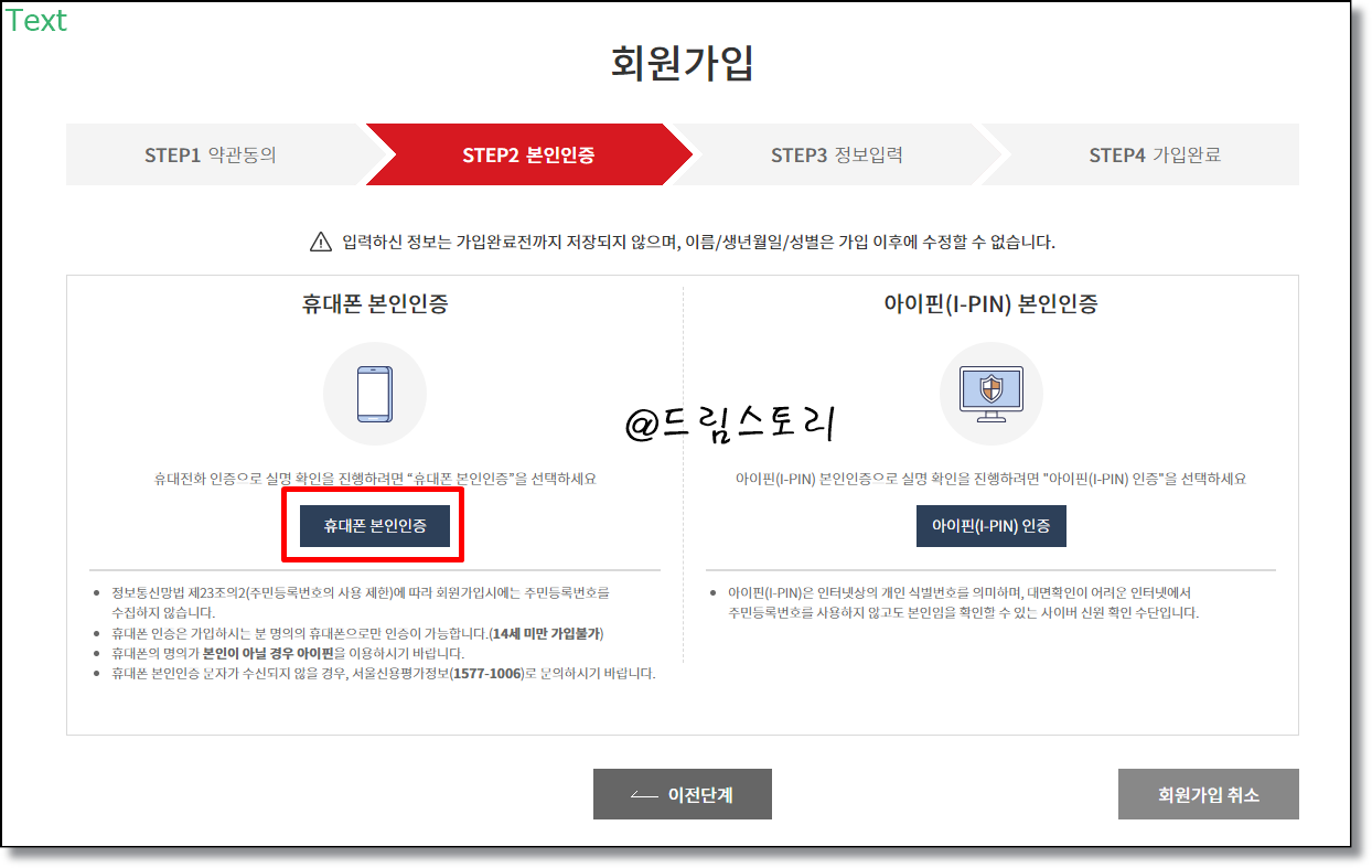 1. 휴대폰 본인인증 후 정보 입력 → 가입 완료